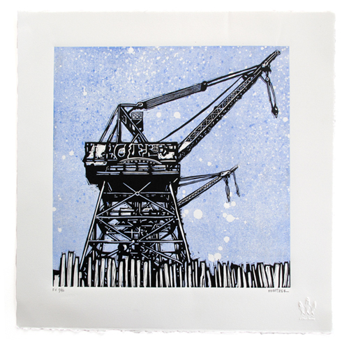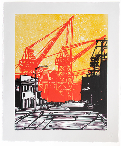 All of my prints are made with my hands. I draw my image onto a sheet of linoleum, then use Japanese wood cutting tools to carve the out plate. Once the image is carved, I ink each plate individually with a hand brayer, then print each print one-at-a-time with either my 18" or 30" Conrad press. I find the manual nature of the creative process incredibly satisfying. The effort, the thought, and the delayed gratification of seeing the finished print never gets old.