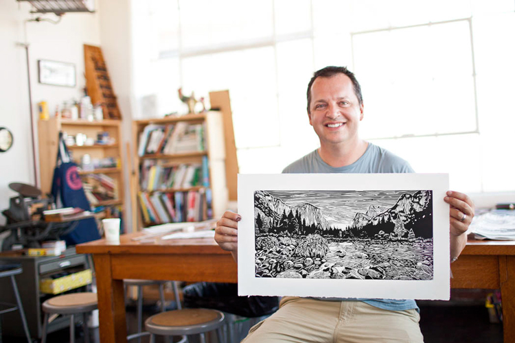 I do all my printing in a large, light-filled studio I share with my wife, Annie Galvin, also an artist. We started 3 Fish Studios in 2007 in order to create a space where we could make art, exhibit our work, and fuel the creative spark of other San Franciscans through printmaking classes. Located near the Pacific Ocean in San Francisco's Outer Sunset district, we welcome visitors and encourage you to drop by next time you are in the neighborhood.
